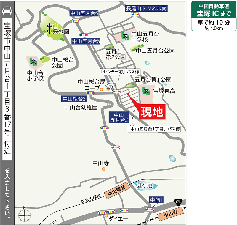 所在地:宝塚市中山五月台1丁目8番17号 付近(カーナビ)