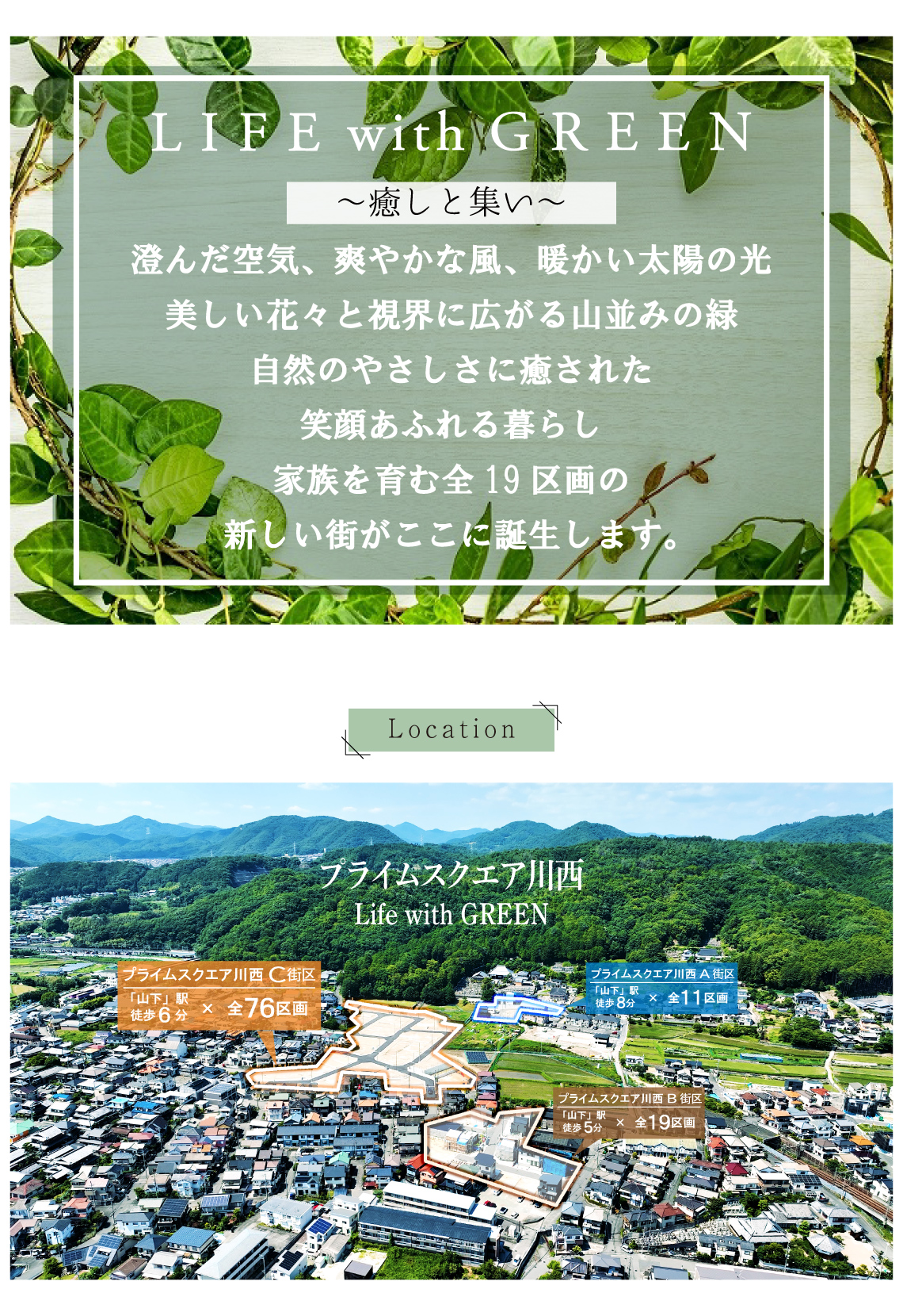 現地から徒歩2分の場所にてC街区全76区画も分譲中!