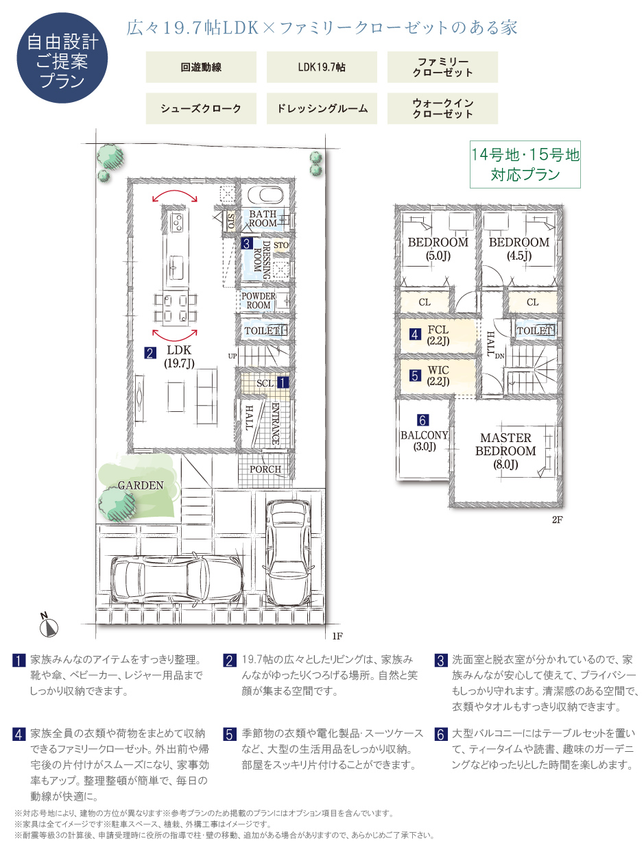 13号地3LDK+FAMILY CLOSET 土地面積/123.77m²(約37.44坪) 建物面積/97.70m²(約29.55坪)
