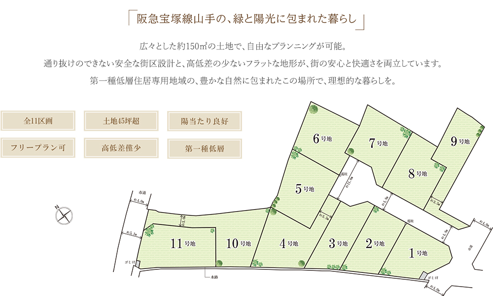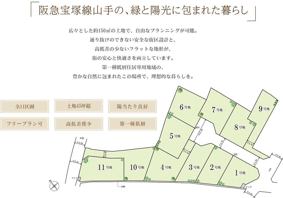 - 全区画150m2以上・ZEH水準住宅!総11区画の新しい街が誕生。