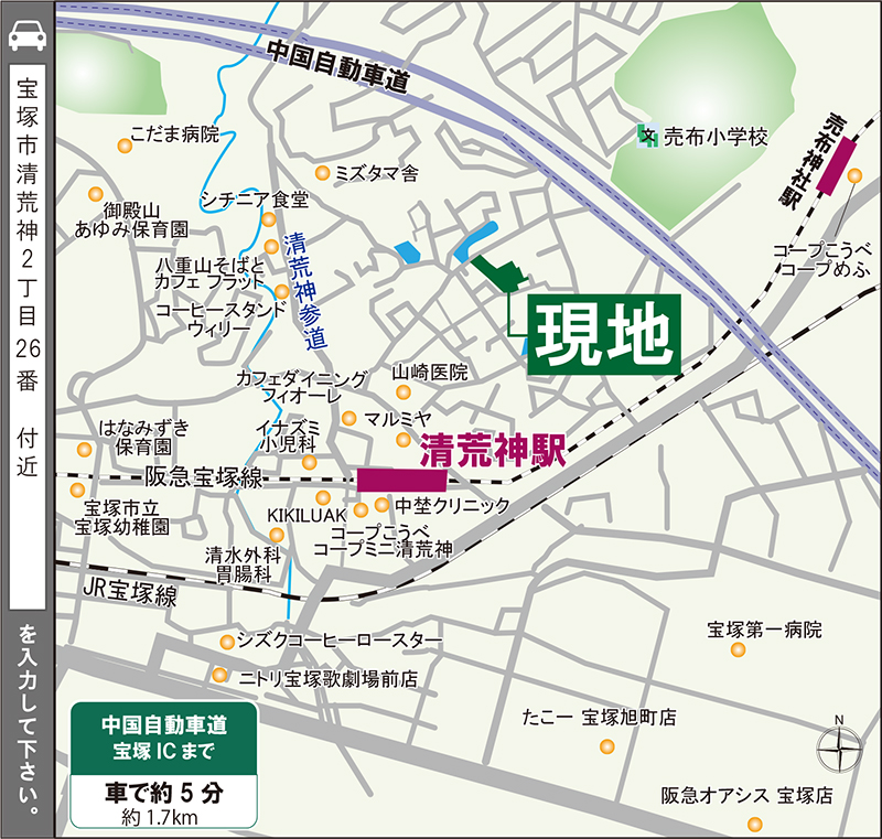 所在地:宝塚市清荒神2丁目26号 付近(カーナビ)