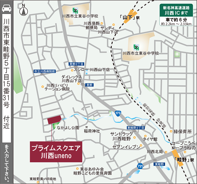 所在地:川西市東畦野5丁目15番31号付近(ナビ検索)