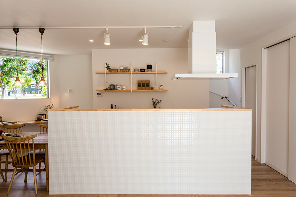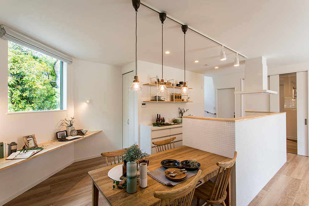 自然と家族が集まる カフェスタイルキッチンの家