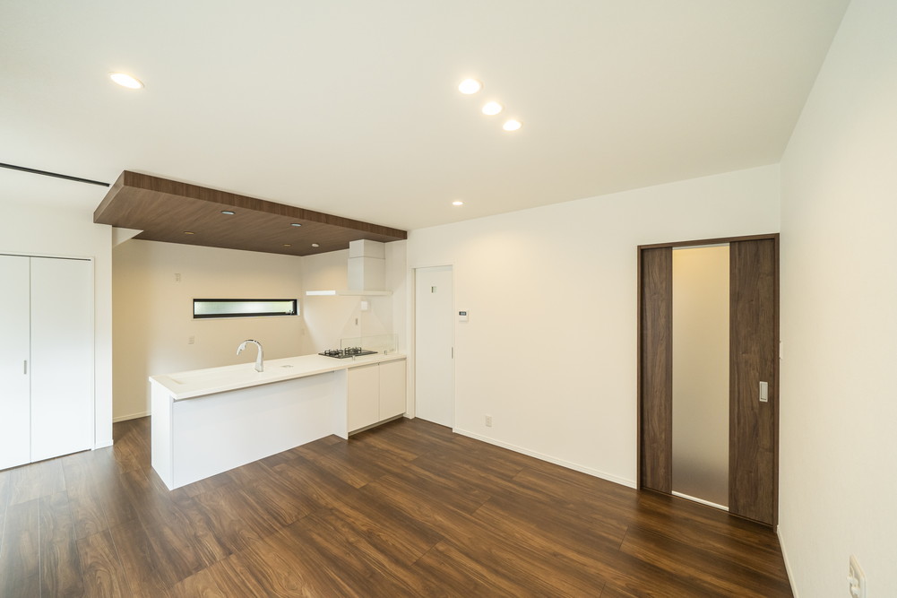 折下げ天井や照明でホテルライクな雰囲気を演出。