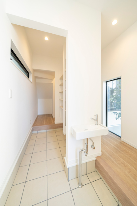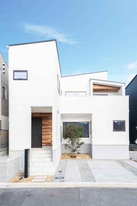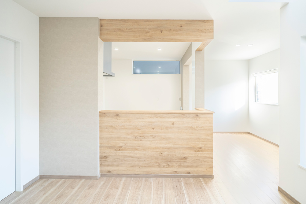 デザイン性に優れたレッドシダーを採用。 吹き抜けリビングで開放的なスペースに仕上げました。 キッチンをほどよく隠してくれる造作Designなど暮らしを意識。