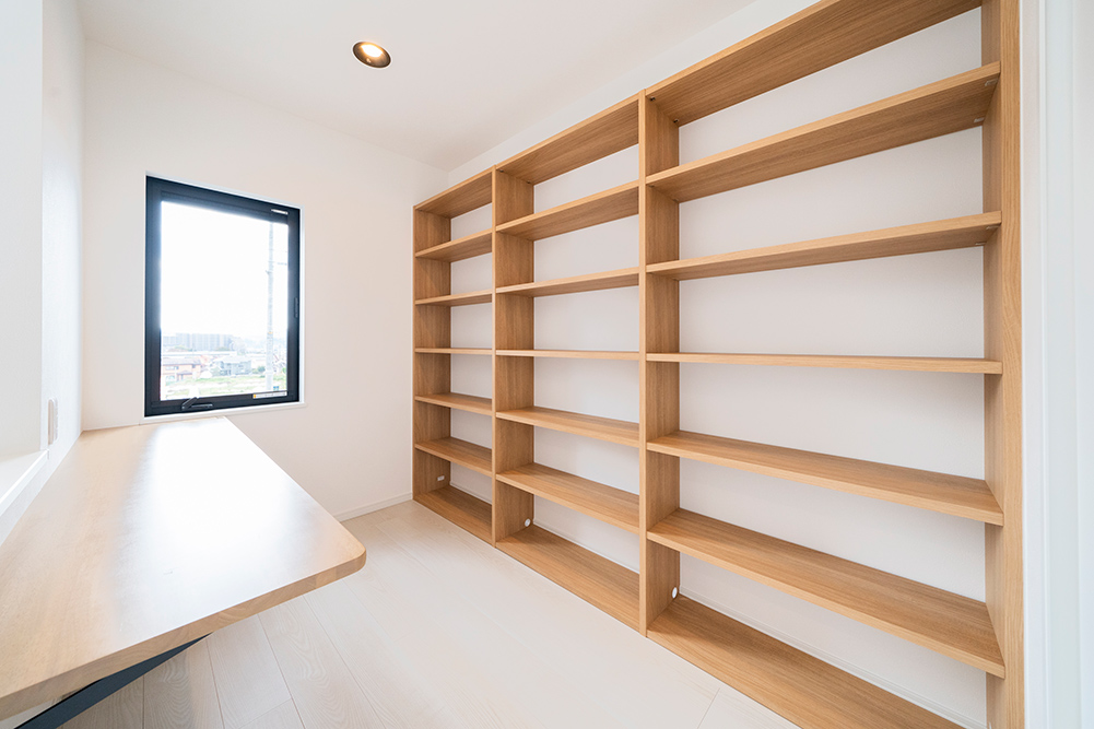リビングサイドの「BookShelf」ではリビングから見える書棚がインテリアの一部にもなっています。やすらぎの読書タイムを過ごすことが出来ます。