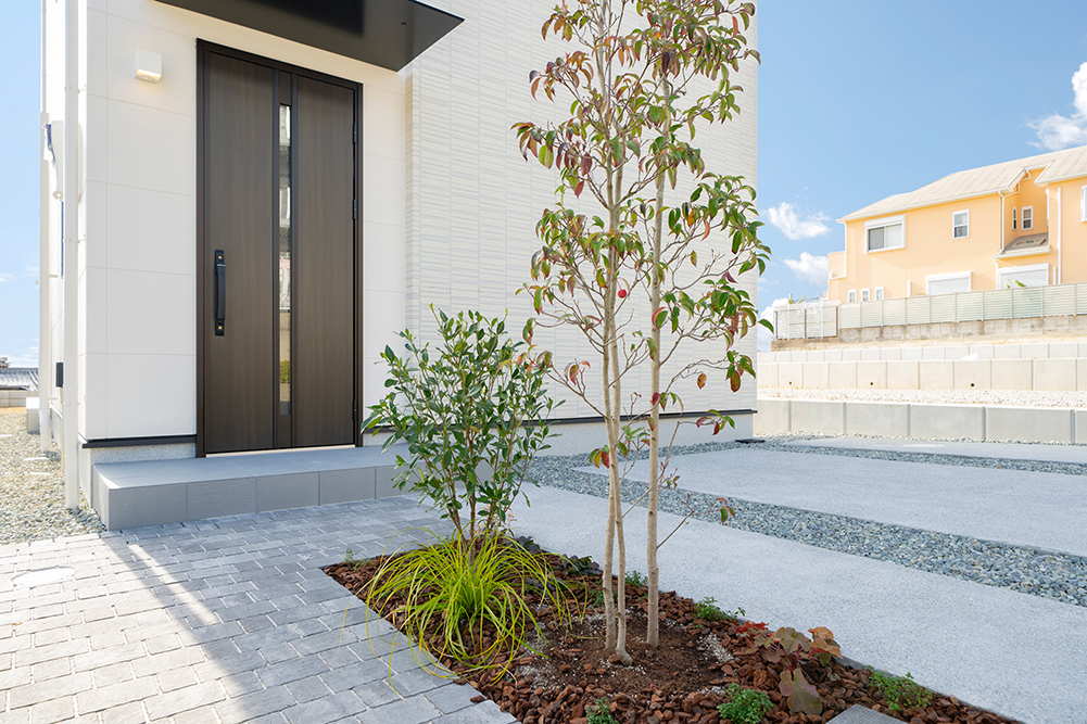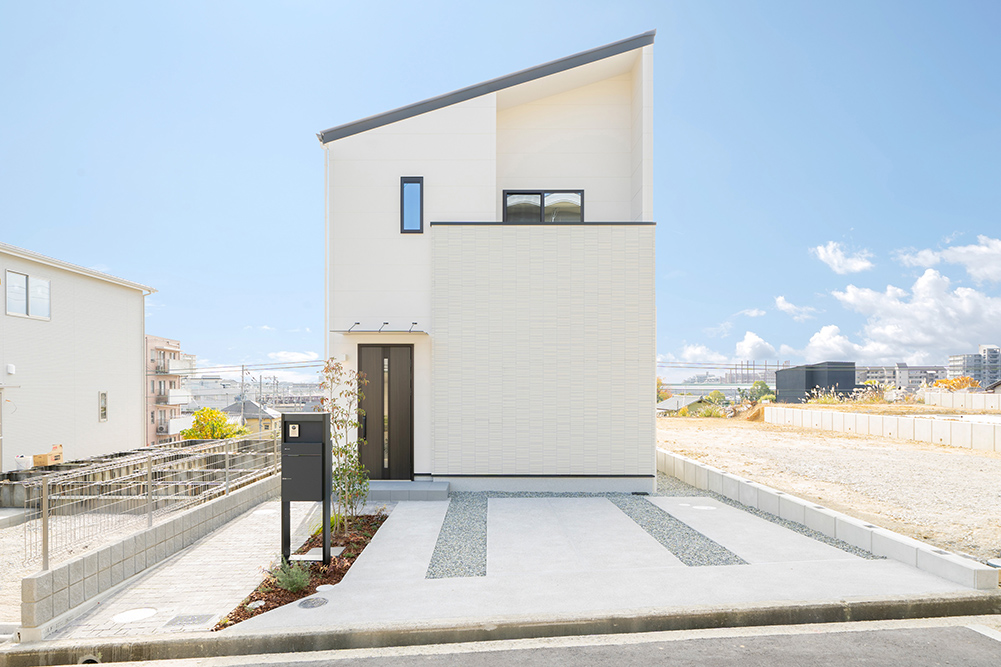 シャープでモダンな印象のファサード 特別な存在を感じさせるタイル張りの佇まい デザインと快適を両立した建築設計です。